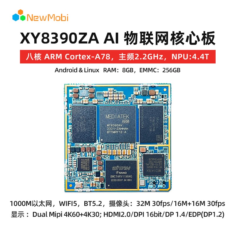 CPU:MT8390( Genio 700) GPU:Mali-G57 MC3 NPU:4.4TOPs 架構(gòu):2xA78 2.2Ghz + 6xA55 2.0Ghz 內(nèi)存:4GB+64G/6G+128G/8G+256G 操作系統(tǒng):Android & Linux 網(wǎng)絡(luò)支持:1000M以太網(wǎng) 無(wú)線(xiàn)連接:Wifi5
